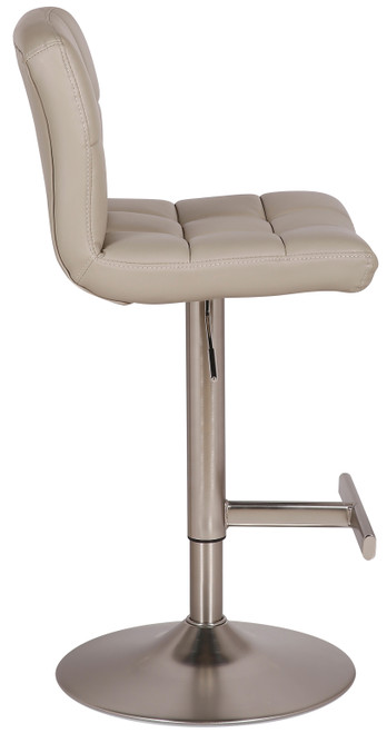 The allegro stool compromises true comfort and eye catching style in a superb way to catch the attention of almost anyone who walks by. The dense padding in the tall, bold seat top provides the upmost satisfactory comfort and whilst being upholstered in the glorious grey faux leather will add a touch of finesse to your kitchen or breakfast bar area. The addition of the well crafted brushed chrome work on the gas lift, footrest and base will not only add a lovely look to your kitchen but it will also bring out the beauty all ready present in the appliances and worktops. As well as comfort, this stool also attains fantastic stability that will reassure any user for long periods of time. This is due to the wide base of support which has a uniquw rubber ring protector around the bottom part of the base to help protect the floor surface. Further relaxation is achieved by the well designed t-bar footrest to give another all round perfect stool..