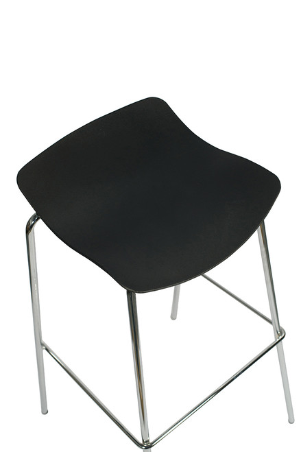 The polypropylene seat is beautifully curved, reminiscent of a gentle wave. This backless stool is fixed at the ideal height for kitchen worktops, islands, and breakfast bars.