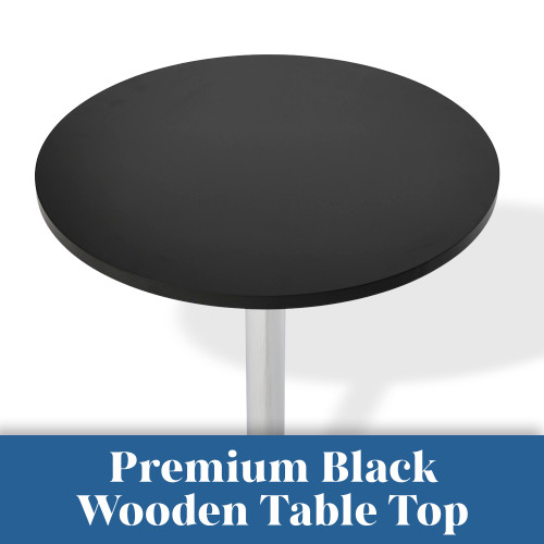Looking for a perfect combo for your barstools? This Deluxe Como Poseur Table in Round Black Wood is a stylish and durable choice for those who prefer class and utility. The deluxe round table in black is made with a high-quality wooden top and a mirror chrome finish frame. The premium weighted base in chrome ensures stability and safety with the rubber ring protector around the bottom of the base, preventing scratches on the floor.