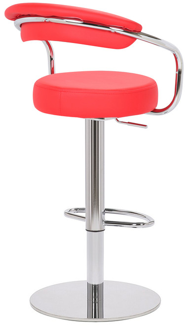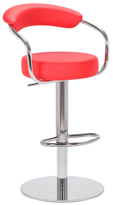The contemporary zenith stool is a very popular choice and one of the most popular stools in Britain, with a stunning design incorporating a slender chrome stem on which lies a hand crafted footrest. The outstandingly comfortable zenith seat top has a deep padded core being upholstered in roaring red faux leather giving a unique look that will go well in any kitchen or breakfast bar area. The seat with the curved arm rests, along with all the metal work on the stool is topped in astounding mirror finished chrome work that will only compliment any kitchen appliances that are already present in the surroundings. A variable height gas lift, 360 degree swivel mechanism and a sturdy circular base with a rubber ring beneath to protect your floor tie up the package nicely. But the difference in the deluxe stool is that the round base on this stool is now weighted offering even more stability and safety on this stool making this a lovely functional stool for everyone to use.