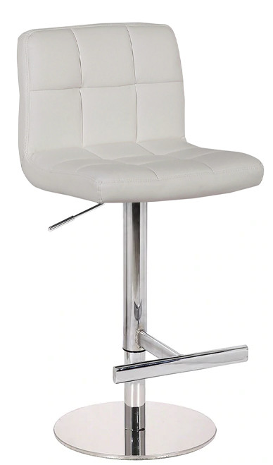 Featuring genuine white leather upholstery for a truly premium finish. The Deluxe Allegro barstool with its soft, high-density padded seat and t-bar footrest provides an exceptionally comfortable seating position whilst showing off its sleek and fashionable design. The premium, chequered, hand finished white leather has a gorgeous feel, supported by the stainless steel chrome effect stand and weighted base for style and stability. Featuring a smooth superior gas lift system with 360° swivel capacity and a weighted base with a rubber floor protector to provide traction on polished surfaces, the Allegro is a perfect addition to any well designed kitchen, bar or exhibition stand. The Deluxe Allegro barstool comes with our 2 year warranty covering any manufacturing defects or faults, a statement of our commitment to you to provide crafted quality barstools. This real leather barstool is a must for any premium contemporary kitchen or well designed work space.