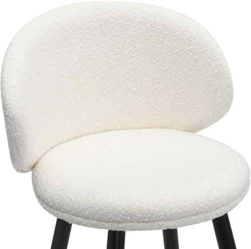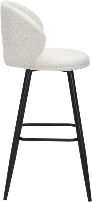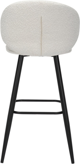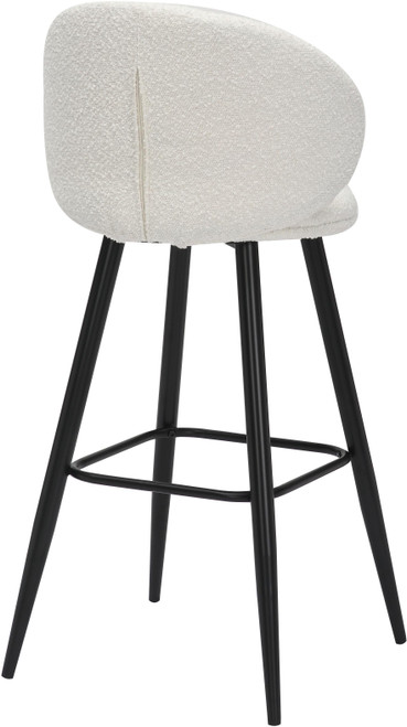 One of the key features of the Roma Boucle bar stool is its expertly designed curved backrest. This ergonomic design ensures that support is felt on all sides, providing comprehensive support and promoting good posture. The curved backrest cradles your body, reducing strain on your back and allowing you to sit comfortably for extended periods. Whether you're enjoying a leisurely meal, engaging in conversation, or simply unwinding with a drink, the Roma Boucle stool makes sure you do so in comfort. Complementing its comfort features, the Roma Boucle bar stool is finished with sleek black legs that give it a modern and chic look. The black finish is not only stylish but also versatile, seamlessly fitting into a variety of interior design schemes. The legs are designed to be sturdy and durable. Along with the footrest, they ensure stability and longevity, making the stool a reliable addition to your home or business.