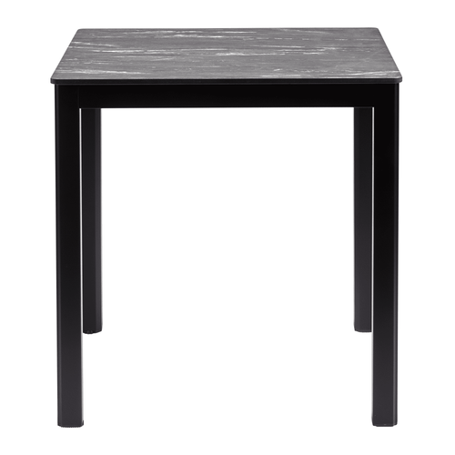 This dining table features an Extrema Black Marble Textured top, engineered for exceptional durability and effortless maintenance. Resistant to weather, impact, abrasions, heat, stains, and UV fading, it maintains its elegant finish in any environment. Supported by a robust black powder-coated steel Paris base with adjustable feet for enhanced stability, this table offers a stylish, long-lasting, and low-maintenance solution for both indoor and outdoor hospitality spaces.