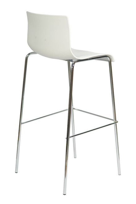 The Kuadra Stool in white brings effortless, understated chic to your home. The gently curved seat with a medium height back rest for support, is easy to clean. The Kuadra's slender chrome legs offer a sleek silhouette, lightweight yet strong the stools fixed height frame offers stability. A U-shaped, integrated footrest strengthens the stool further. Rubber feet add protection for your floor and prevent the stool from sliding.