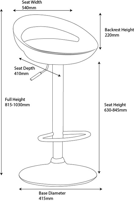 The gently curved low backrest provides supportive comfort, while the 360° swivel seat keeps movement easy and sociable. A simple gas lift mechanism lets you adjust the height with ease, and it makes this adjustable bar stool a practical choice for any modern kitchen island or high counter. The integrated semi-circular chrome footrest enhances comfort and stability when sitting or stepping down. Make the upgrade and experience the ultimate in style and reliability!